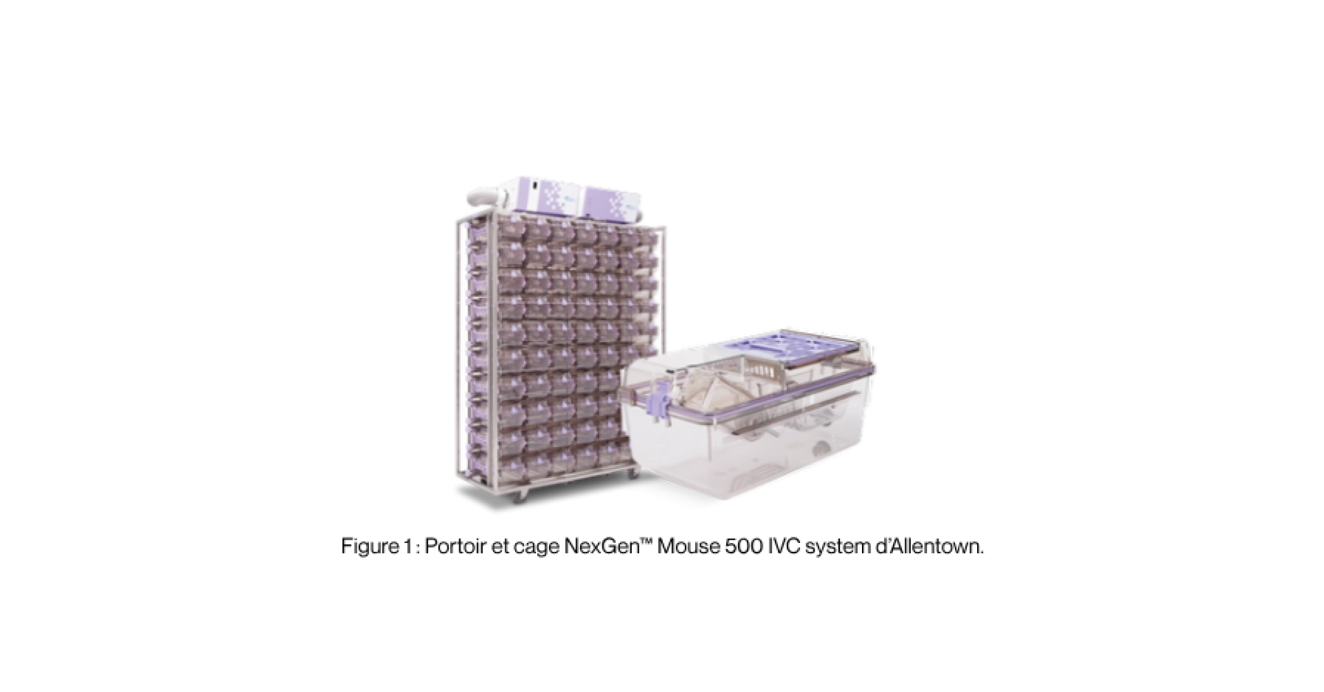 Les souris de laboratoire vivent classiquement dans des cages en polycarbonate placées sur des portoirs à plusieurs étages (voir Figure 1). Les couvercles des cages peuvent être de simples grilles dans les animaleries dites conventionnelles, ou ces couvercles peuvent avoir des filtres très fins qui permettent de maintenir les souris dans des conditions propres grâce aux systèmes de portoirs ventilés (Individual Ventilated Cage : IVC) qui contrôlent l’air entrant et sortant (Hickman et al., 2017).